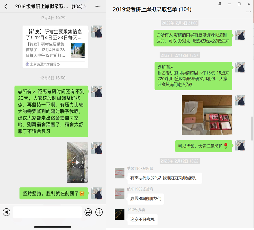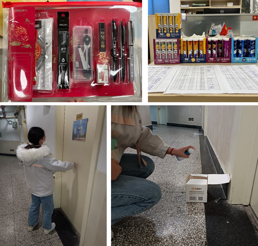 12月12日,学院为考研员工发放文具大礼包和多种口味的维生素C泡腾片,增强考生免疫力,助力考生健康备考。辅导员询问所有考研员工身体状况,嘱咐大家最后一周调整时间作息,保证饱满的精神状态和平和愉悦的心态来应对考试。考研一对一帮扶的党员员工骨干为感冒发烧的同学无接触配送N95口罩和抗原自测盒。