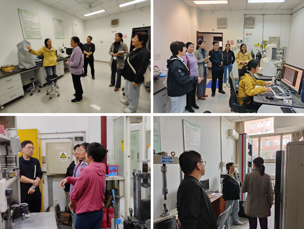 最后,在机电学院老师的带领下,参观了机电材料中心先进钢铁材料及其服役行为、先进复合材料等研究方向实验室,机电老师向我们介绍了扫描电镜、热膨胀仪、氢热分析仪、应力腐蚀试验机及热压烧结炉等表征及制备仪器。