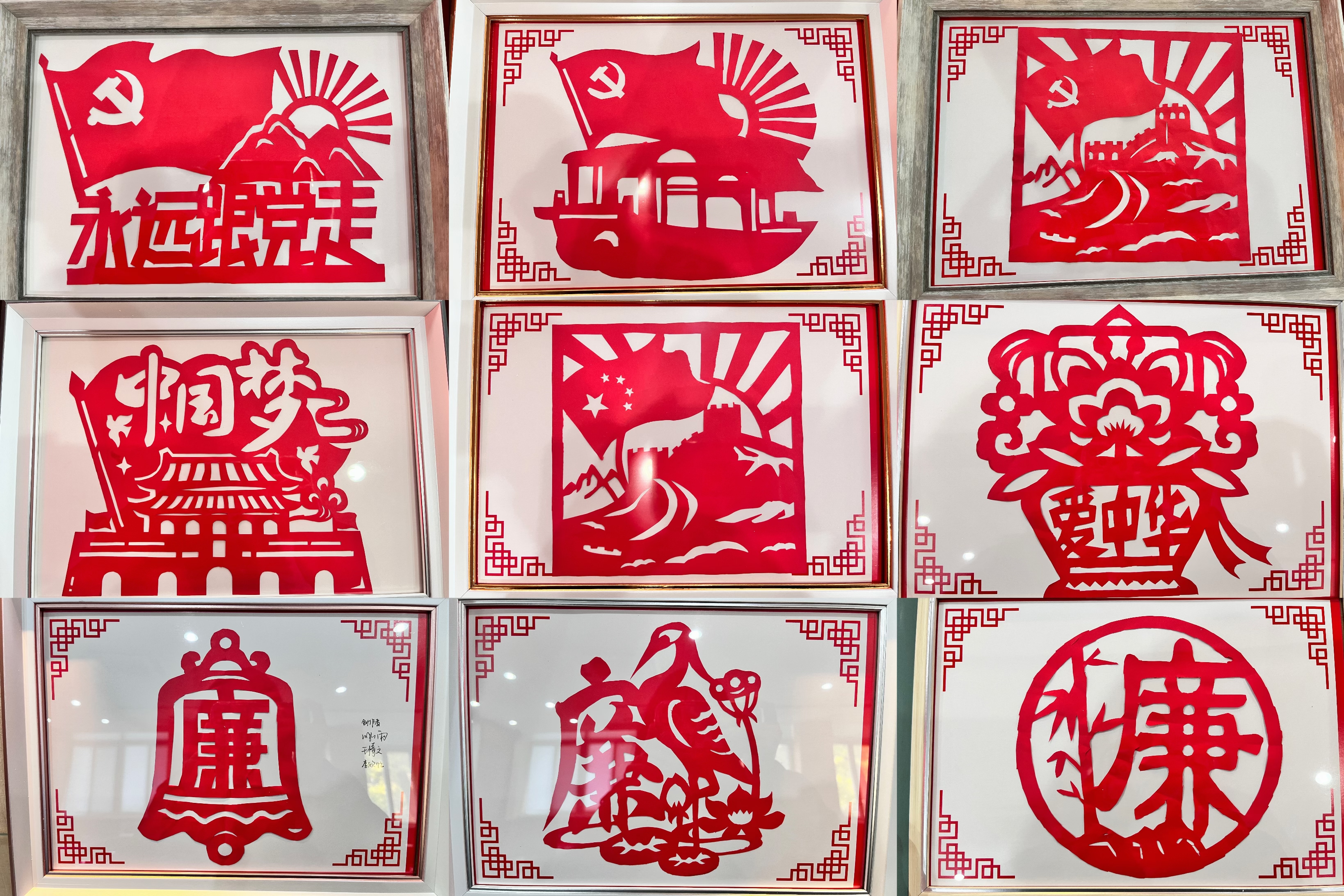 一幅幅蕴含着丰富爱党、爱国、廉洁元素的剪纸令师生们不住地赞叹中华传统文化的魅力,这些鲜活的剪纸图案不仅跃然纸上,更直抵心间。