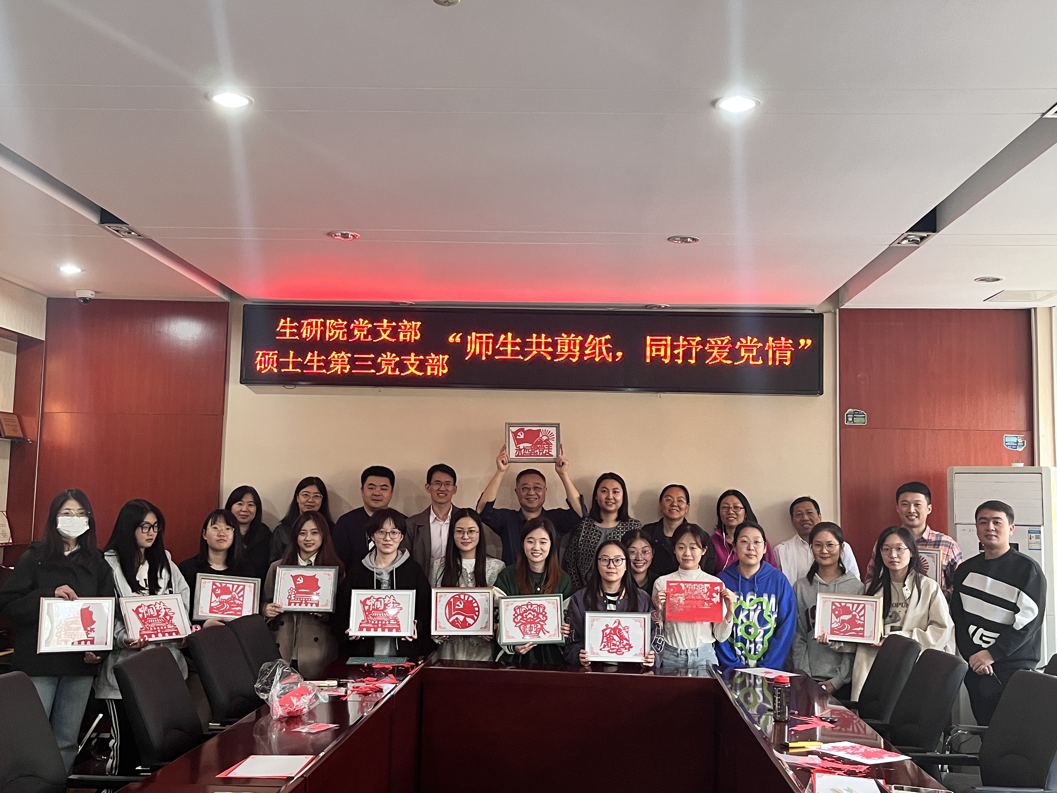为弘扬中国优秀传统文化,厚植爱党情怀,10月23号下午,生研院教师党支部和硕士第三党支部在第二教学楼研究院会议室联合举行“师生共剪纸,同抒爱党情”主题党日活动。通过“非遗”剪纸技艺让爱党情怀“浓”起来、形式“潮”起来、内容“活”起来。