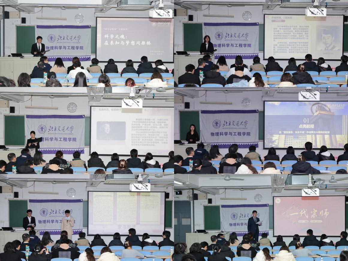 本次“科学家精神”演讲活动以小组形式展开,各小组成员满怀激情与敬意,从自身独特视角出发,深入解读科学家精神、院士精神以及新时代北斗精神的深刻内涵。他们以真挚的情感和生动的语言,分享了隐“功”埋名三十载,终生报国不言悔的黄旭华先生、“五年归国路,十年两弹成”的钱学森先生、“晶态物理领路人,晶格理论育后昆”的黄昆先生、“倾一生心血,绘地质华章”的杨衍忠先生、“星耀苍穹,导航神州”的北斗团队等事迹,展示科学家们瞩目成就背后的故事。